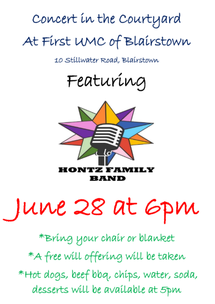 SATURDAY June 28, 2025, 6pm RAIN or SHINE Come see the Hontz Family Band for an evening of family-friendly fun. Tickets are